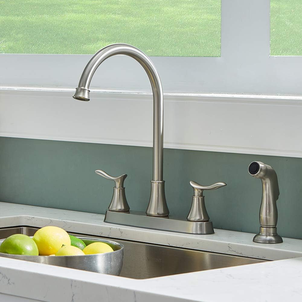 Separate deck plate + see all. Choose from traditional, contemporary, and transitional faucets. Choose from a wide range of styles and finish offerings that include champagne bronze ™, matte black, stainless, polished nickel and more. 4.5 out of 5 stars 131. $15.00 coupon applied at checkout. Aside from the normal sink faucet, you can also install a pot filler faucet. 3.9 out of 5 stars. 99 ($12.86/count) $20.00 coupon applied at checkout. Before we start, first check that your kitchen sink features an extra hole close to the faucet for installing a sprayer. The madison kitchen faucet with sprayer and the madison kitchen faucet with sprayer and soap dispenser features a single handle design with a 46 in. 5% coupon applied at checkout save 5% with coupon. Valisy two handle oil rubbed bronze kitchen faucet with side sprayer Separate deck plate + see all.